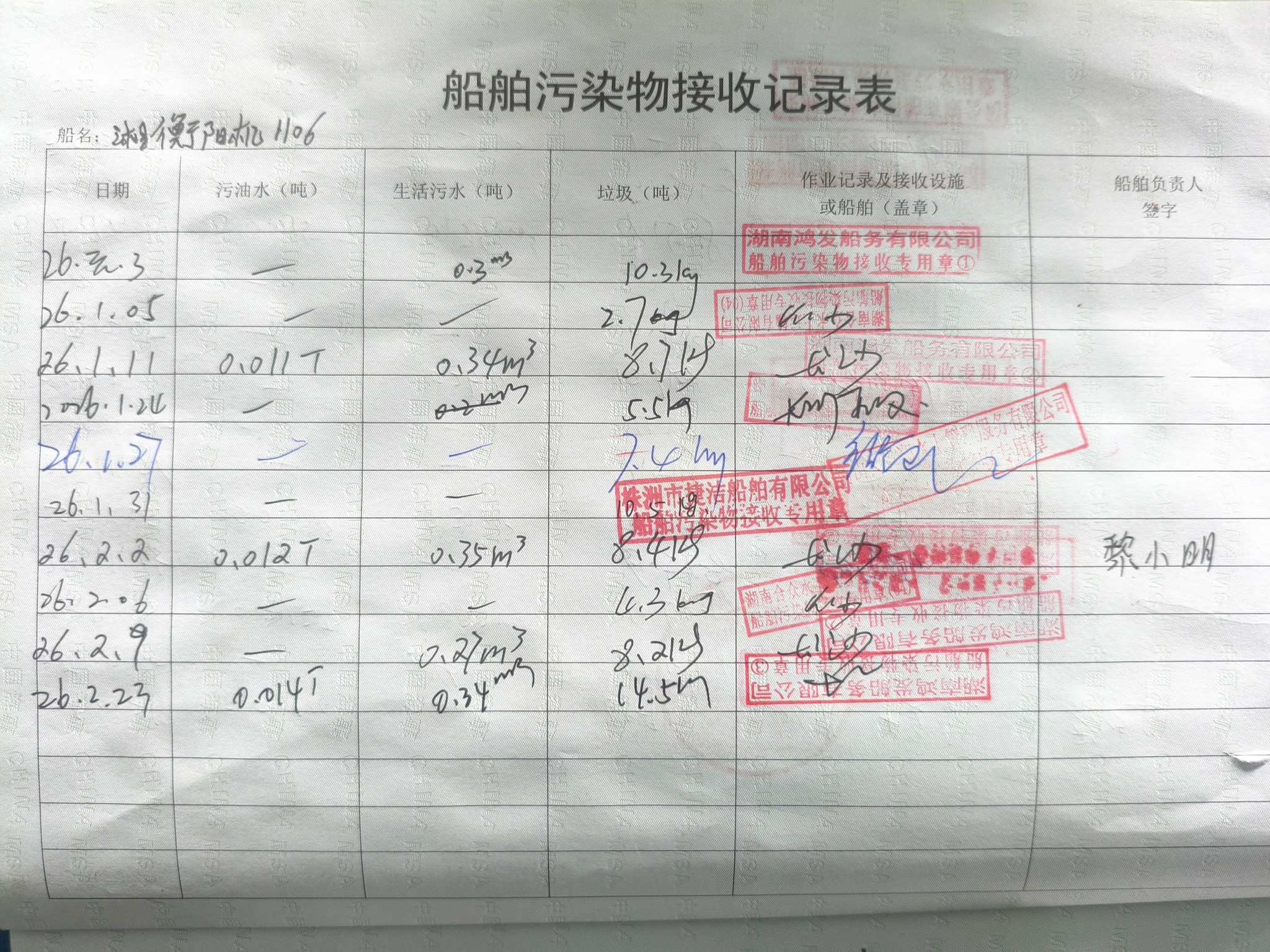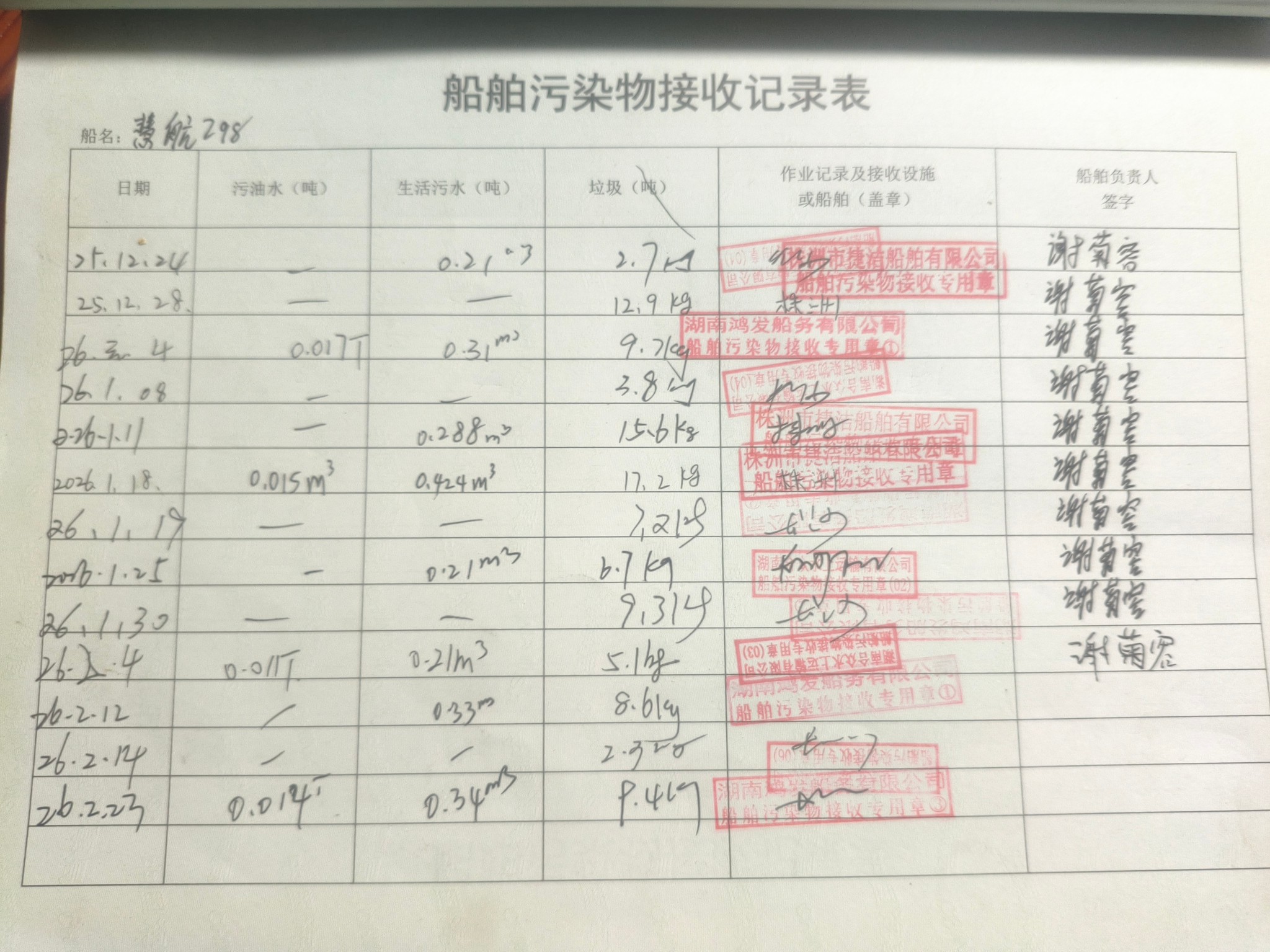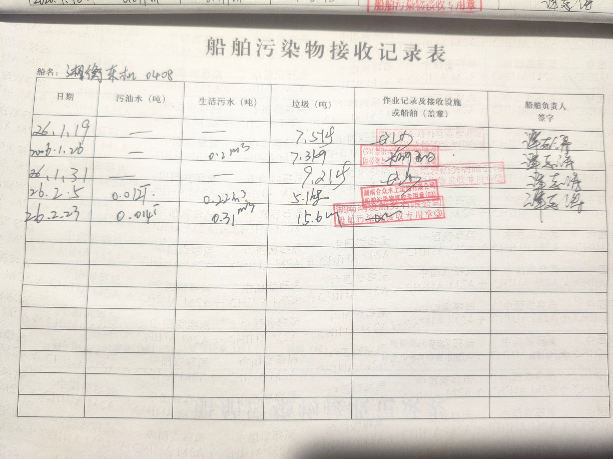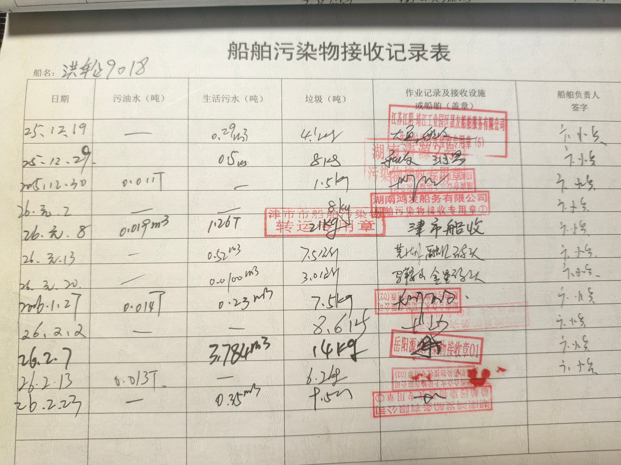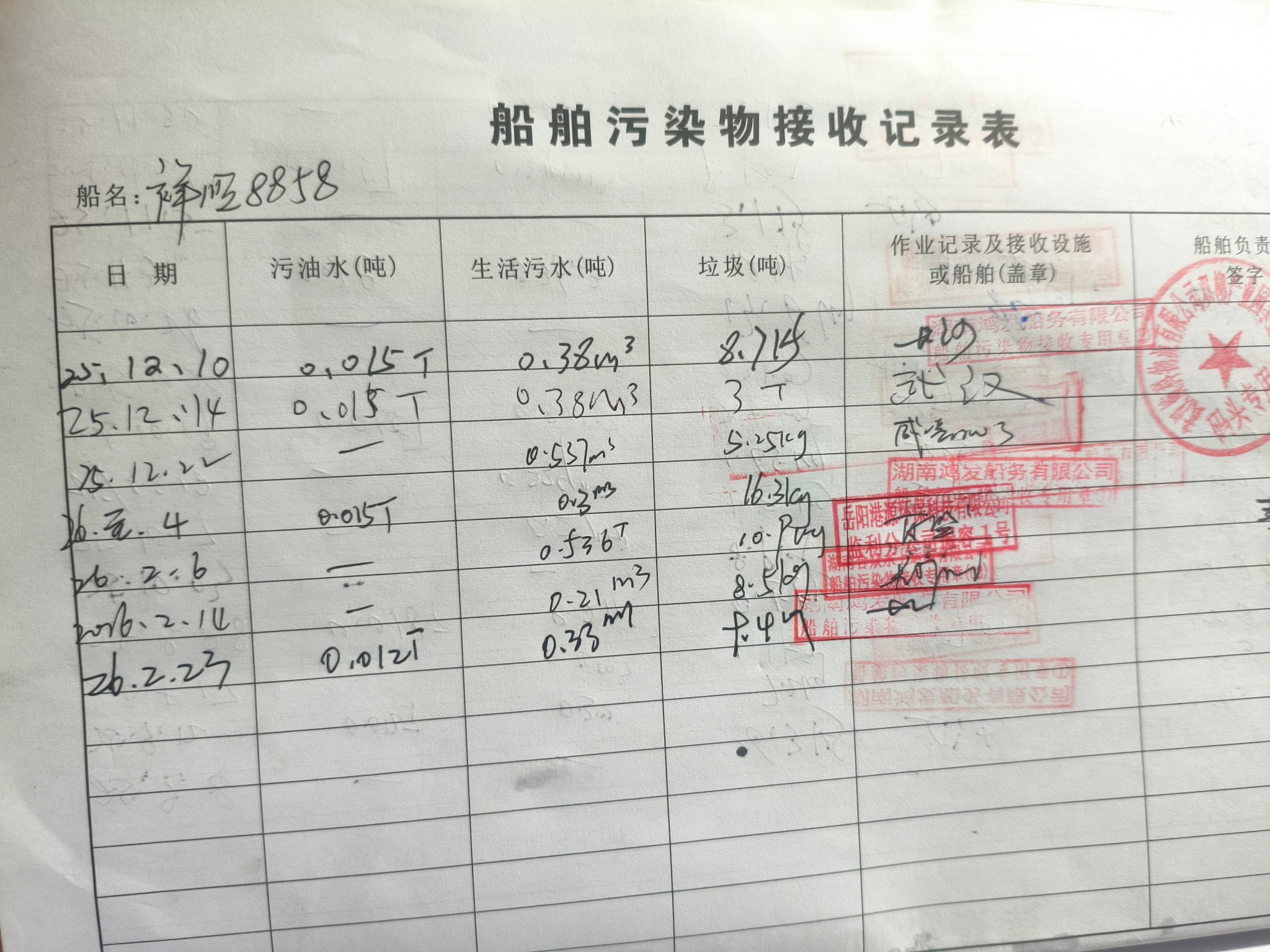 登船台账