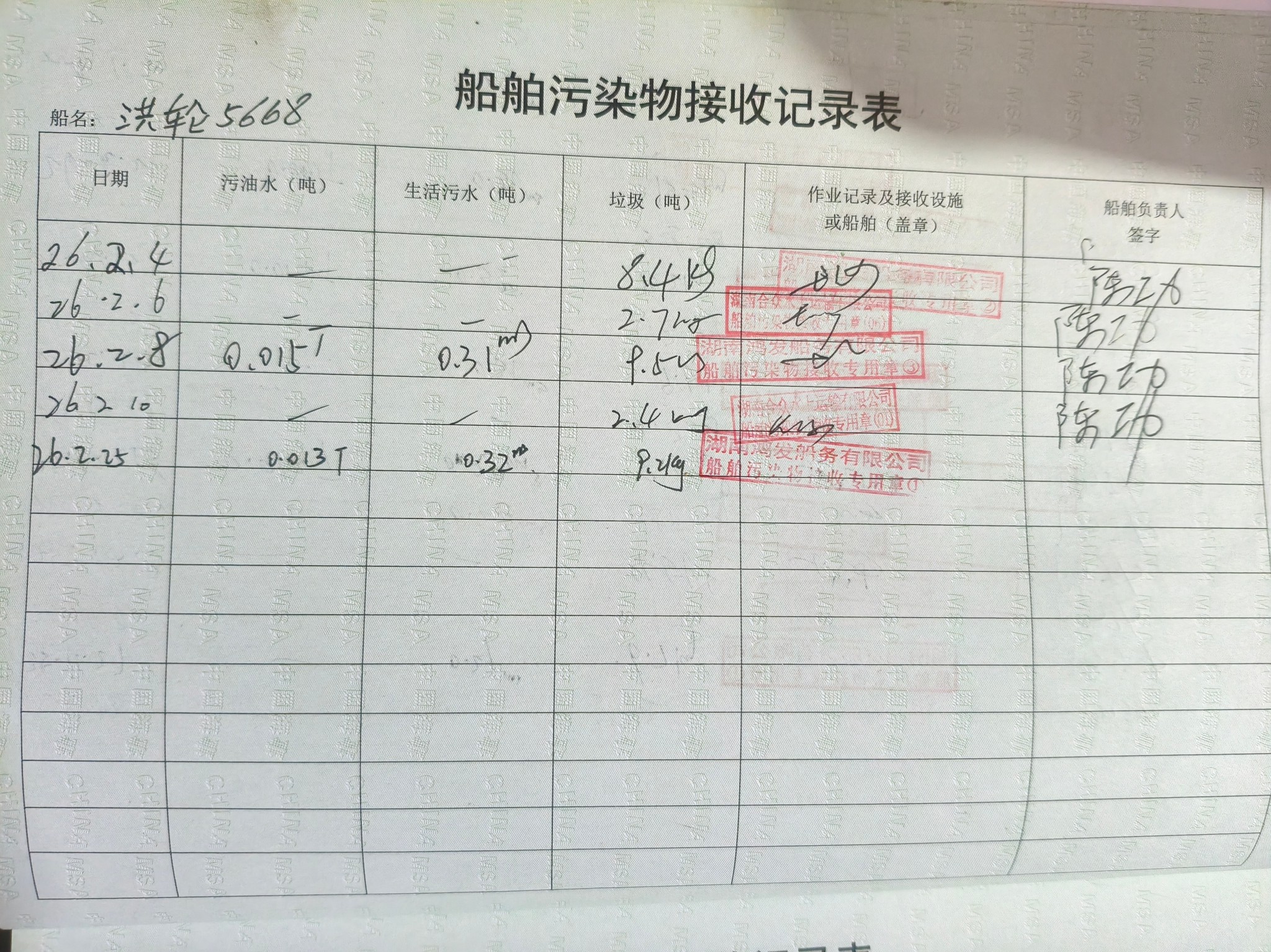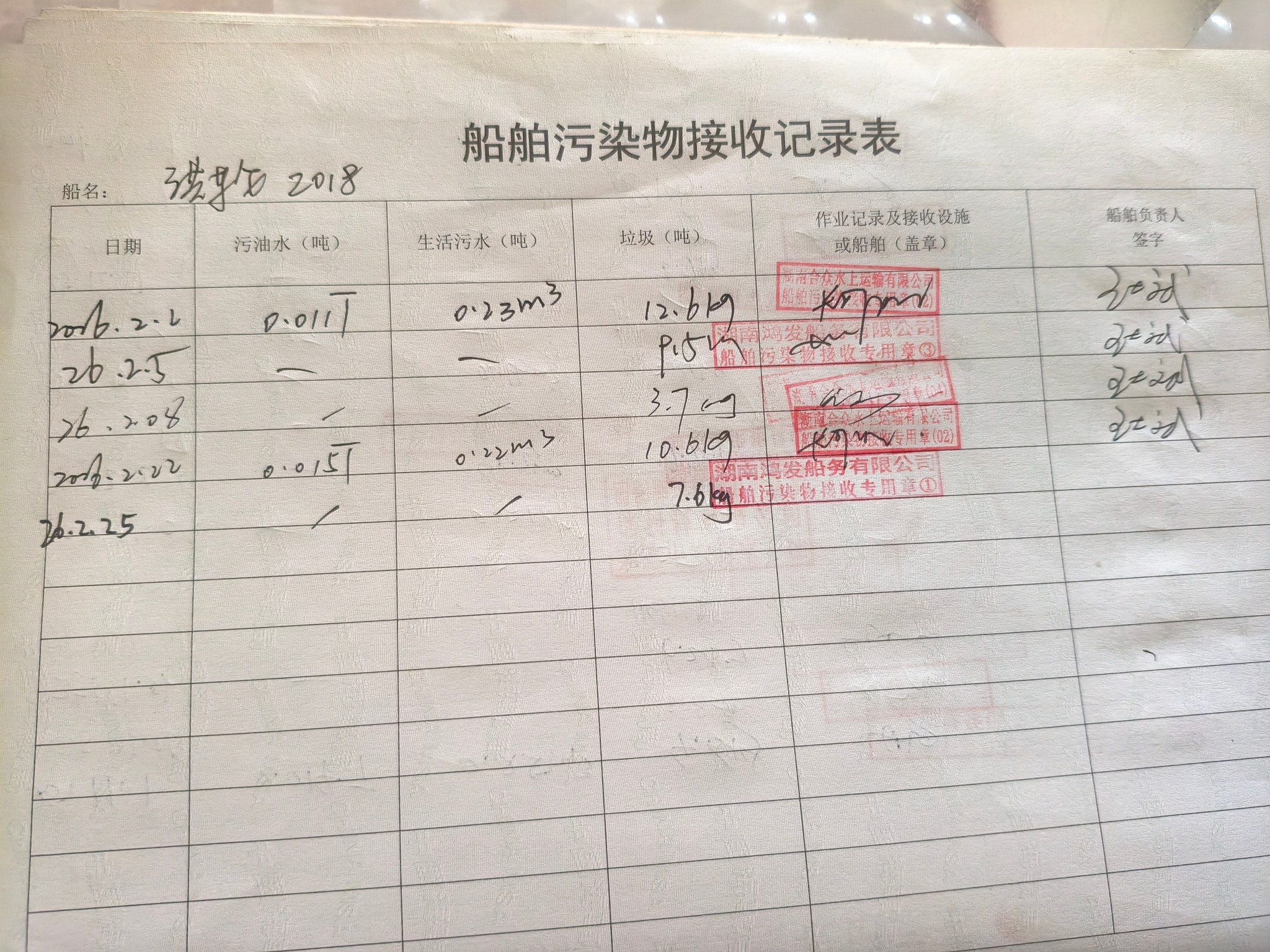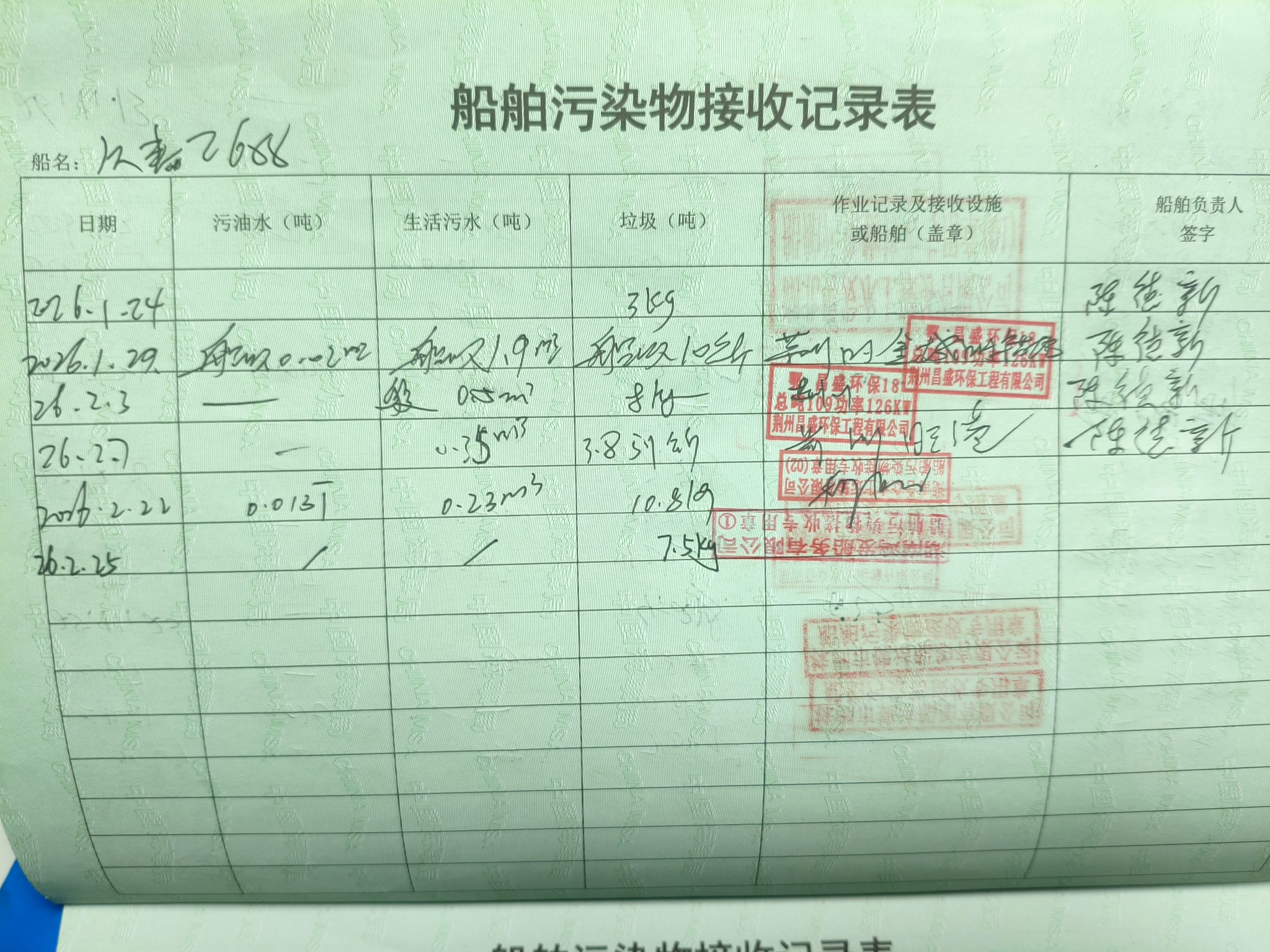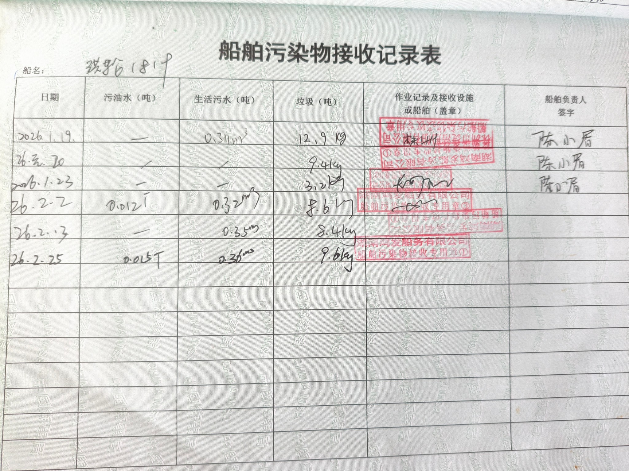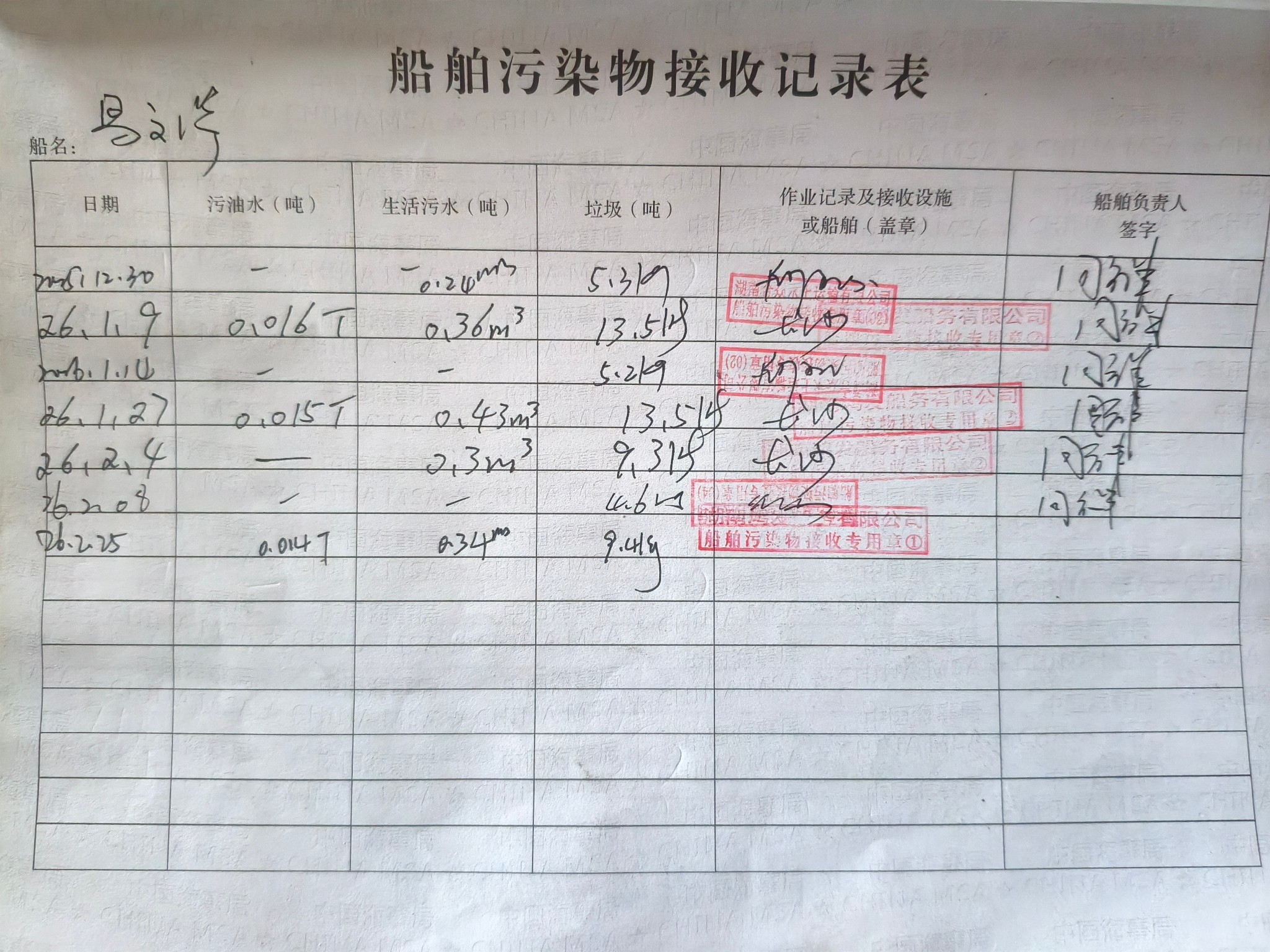 登船台账