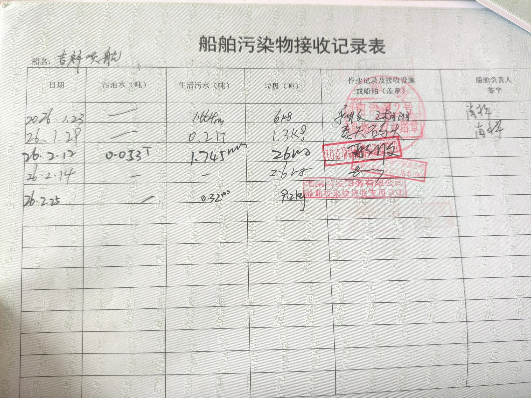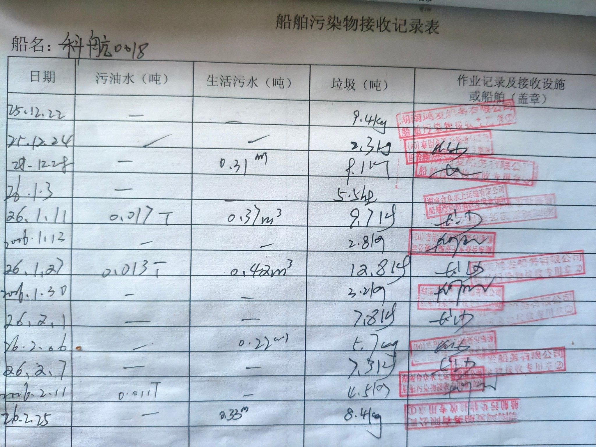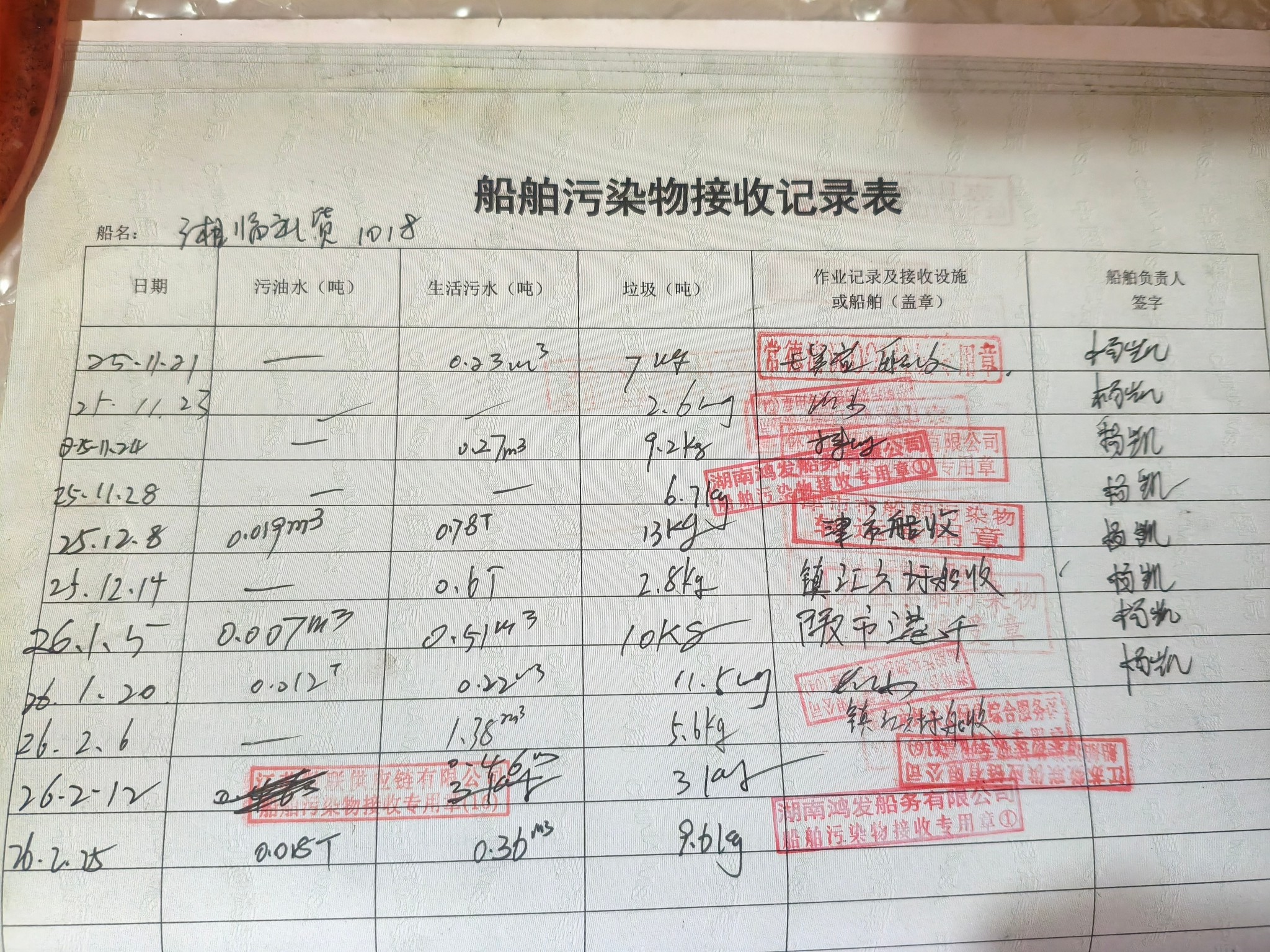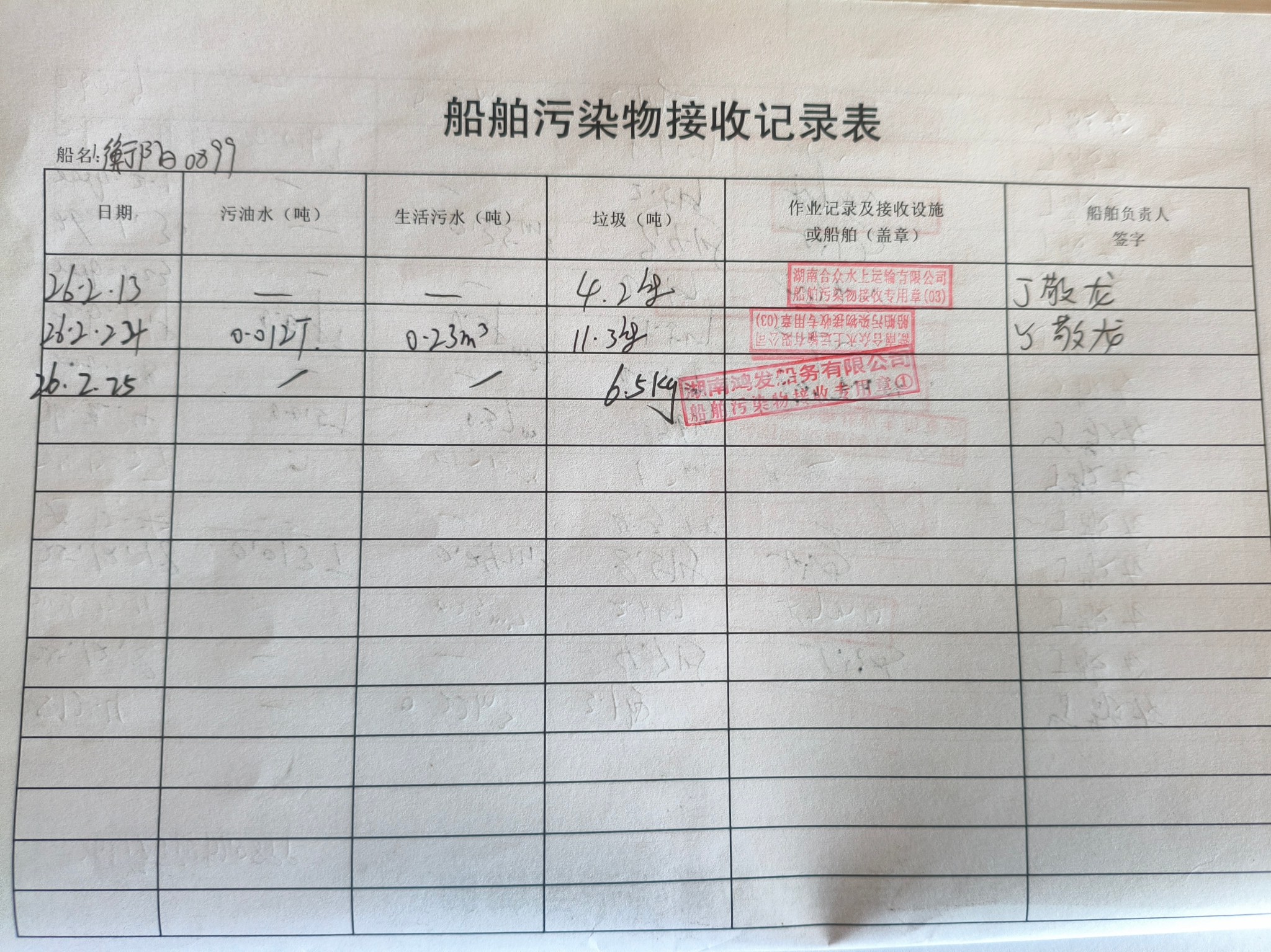 登船台账