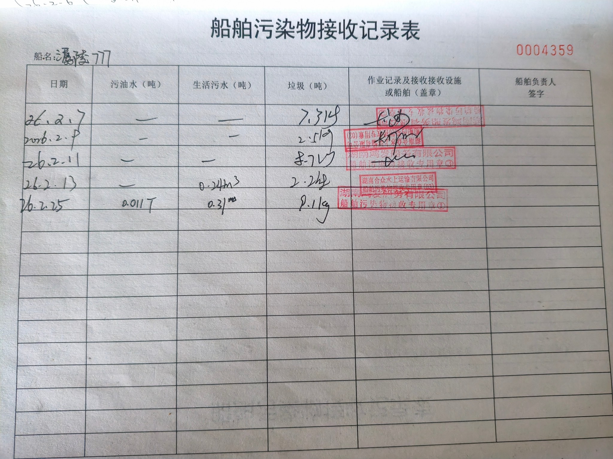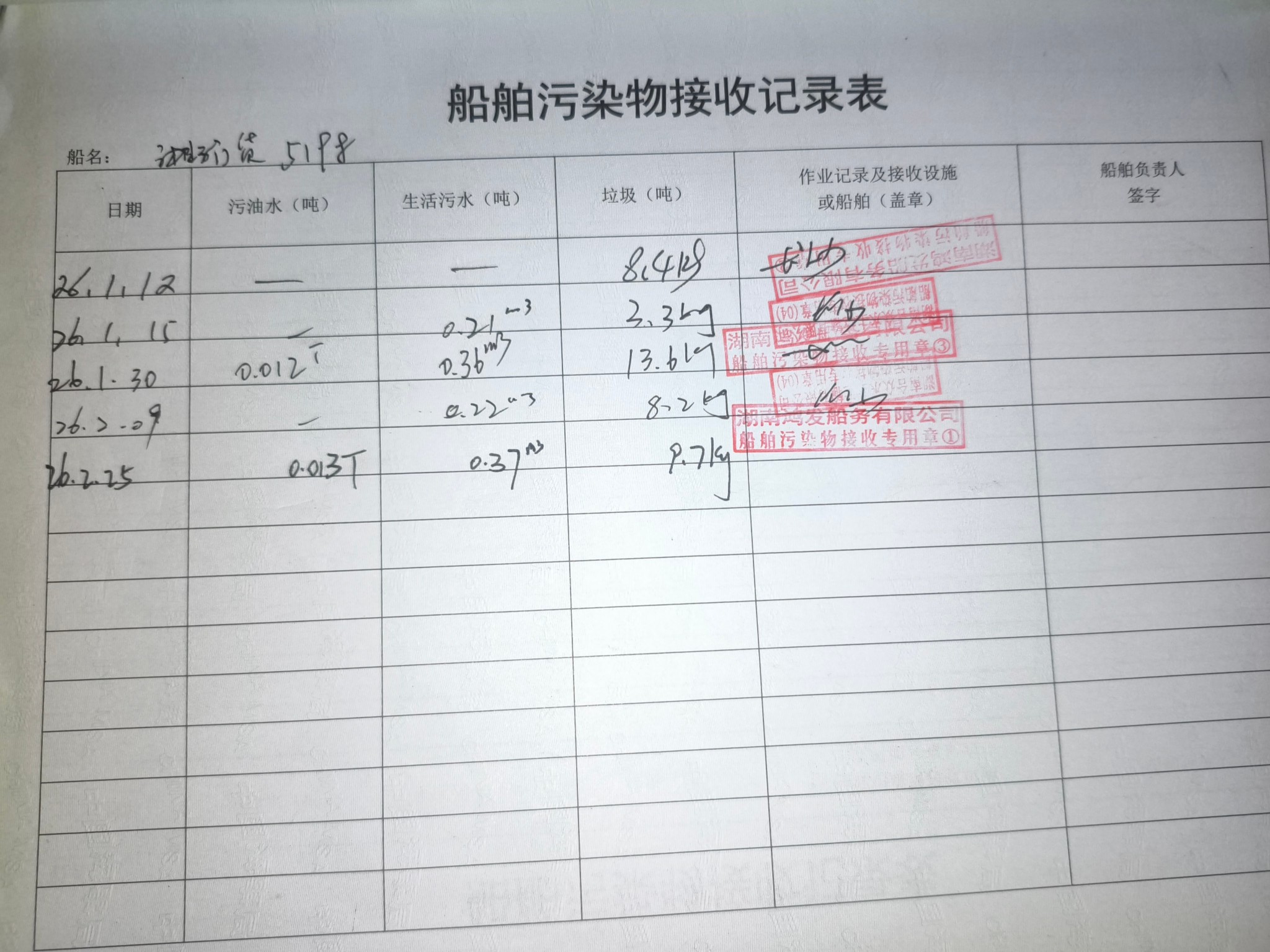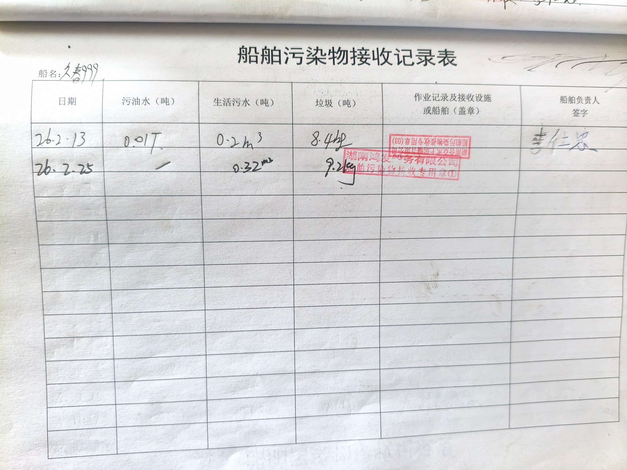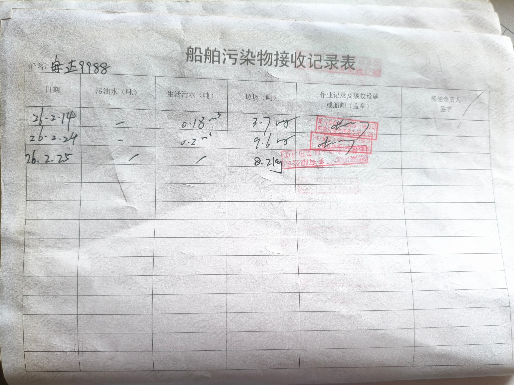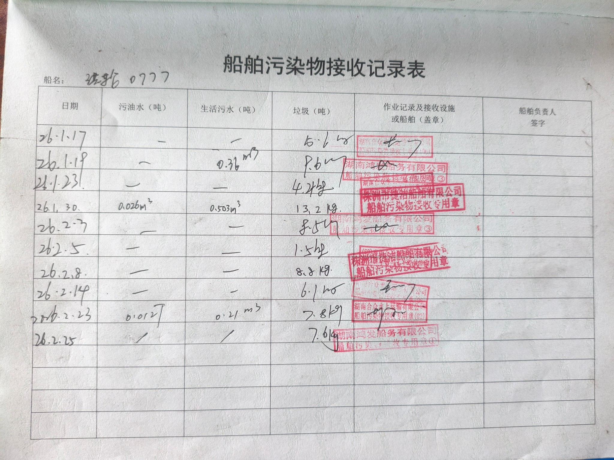 登船台账