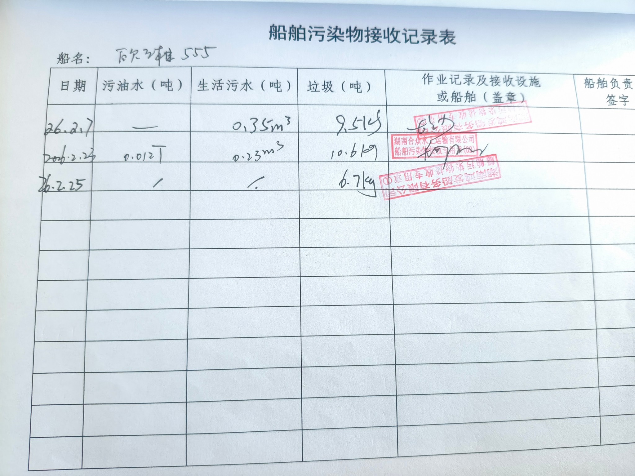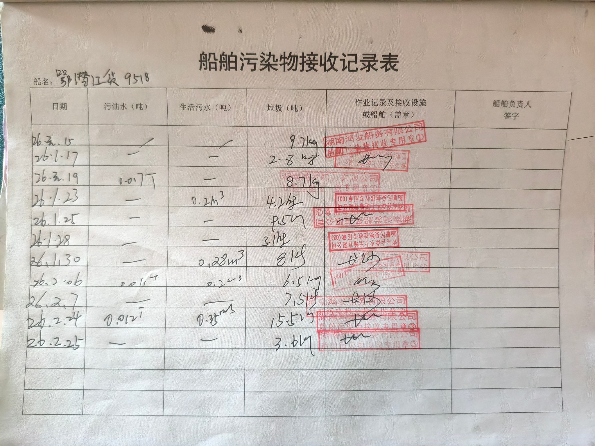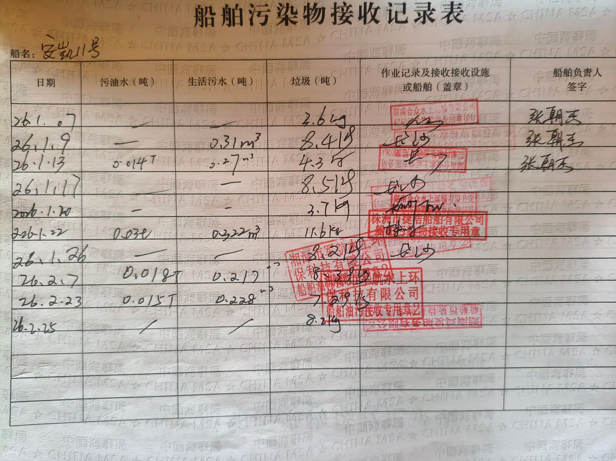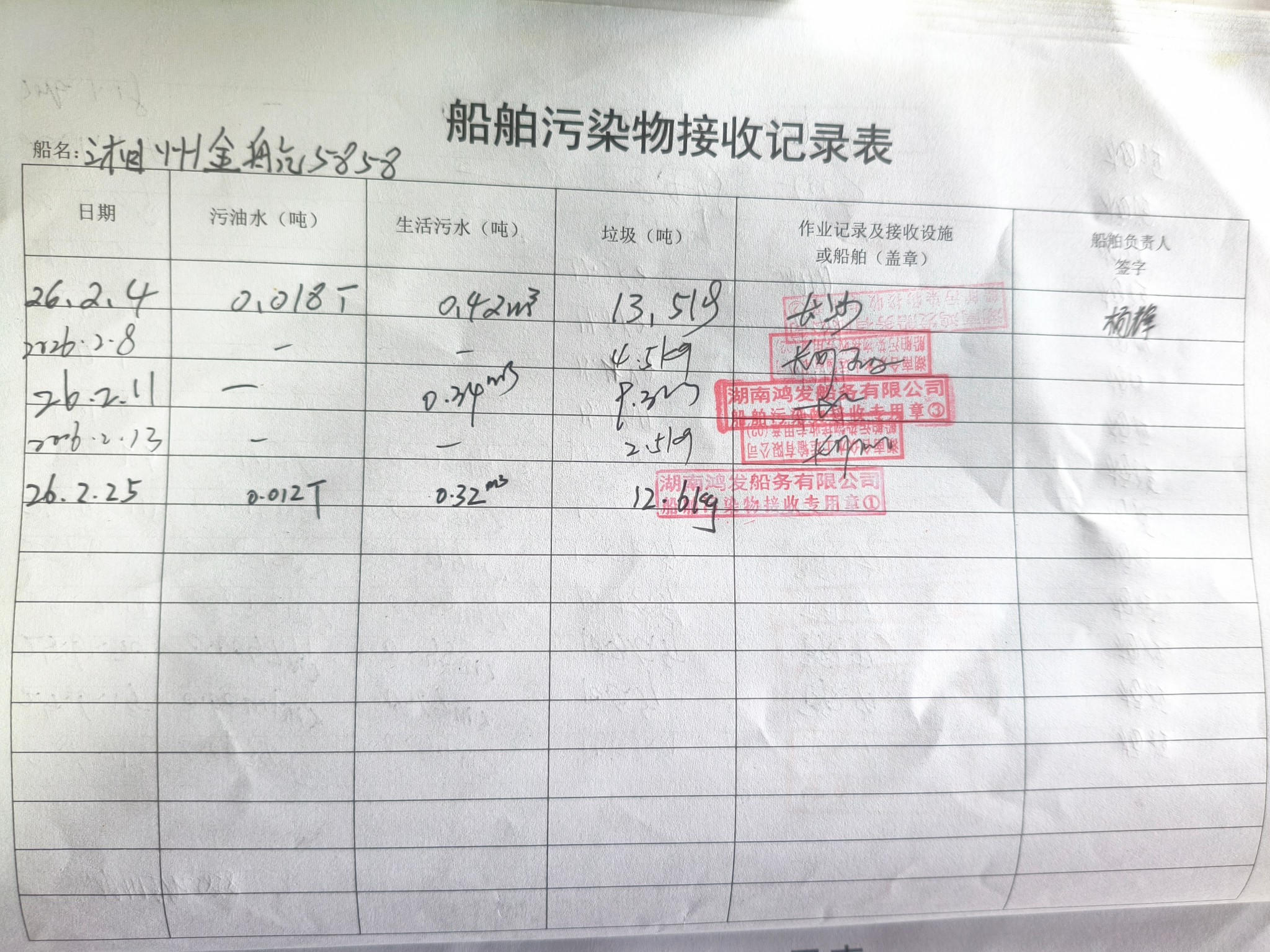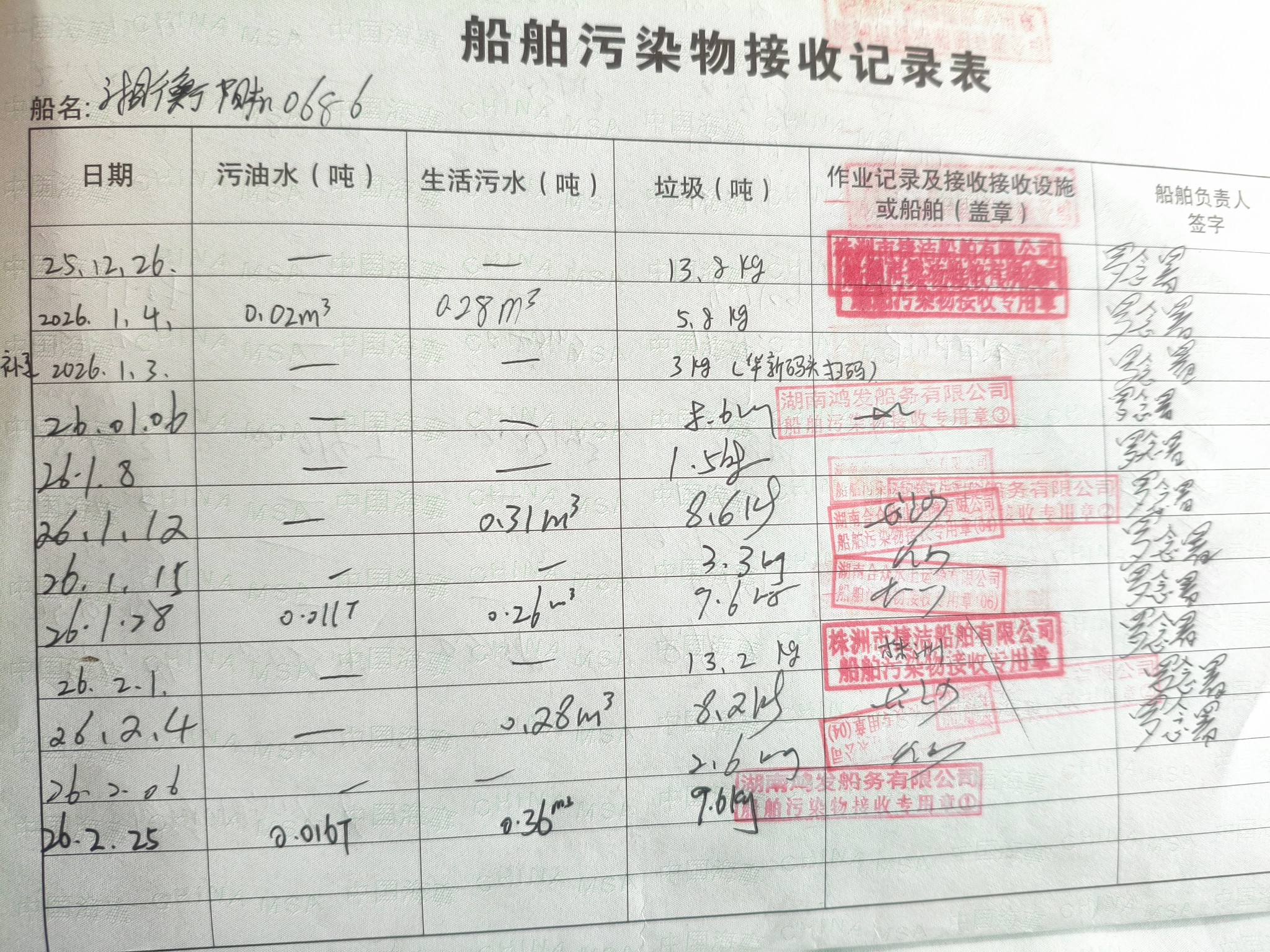 登船台账