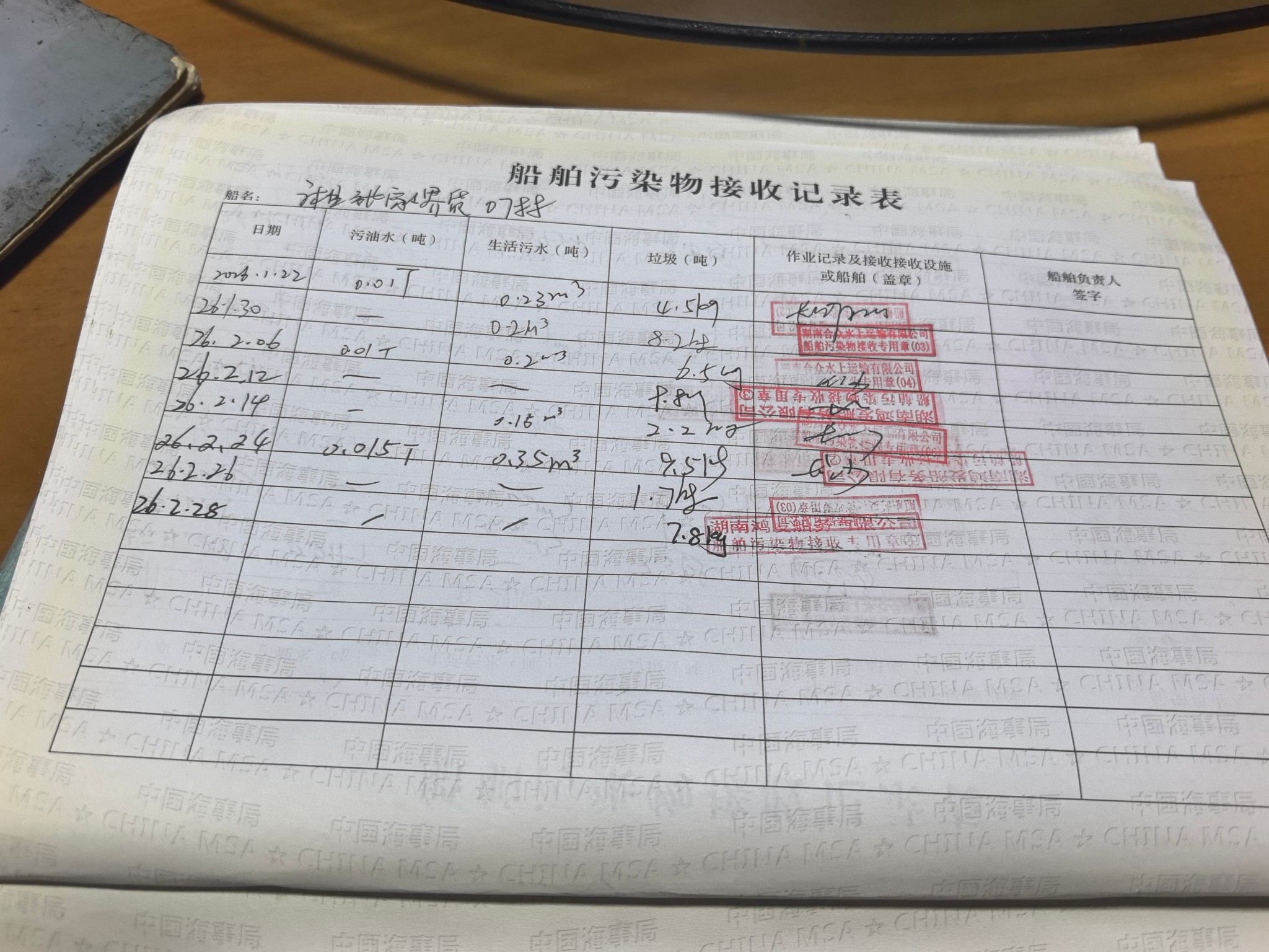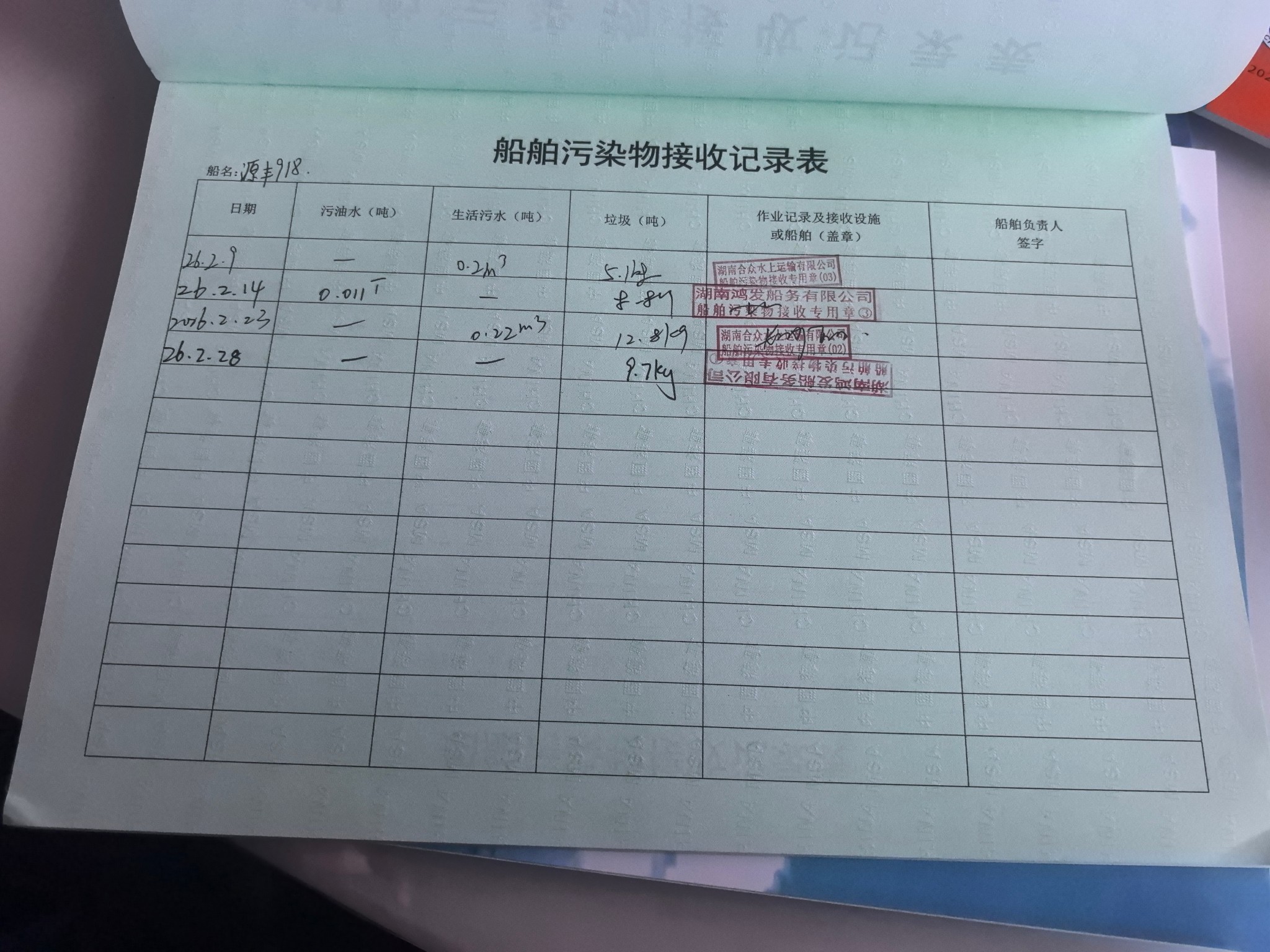 登船台账