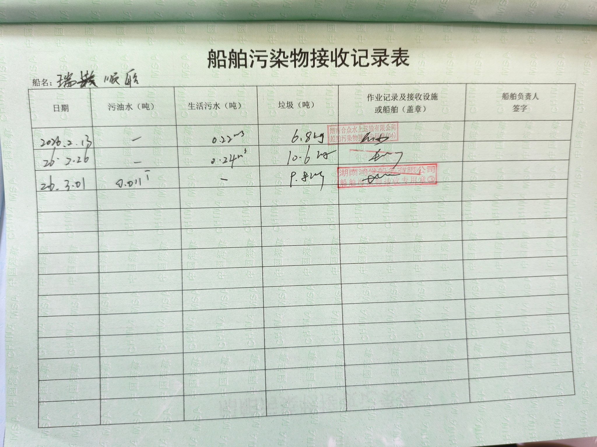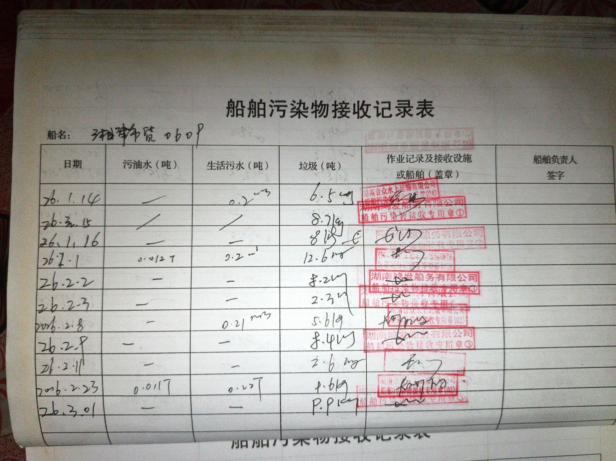 登船台账