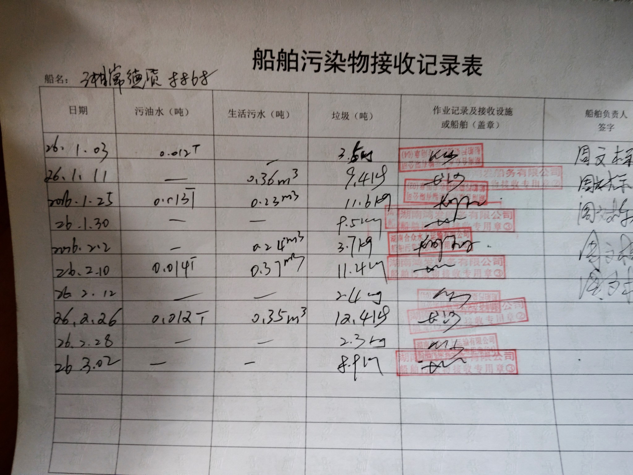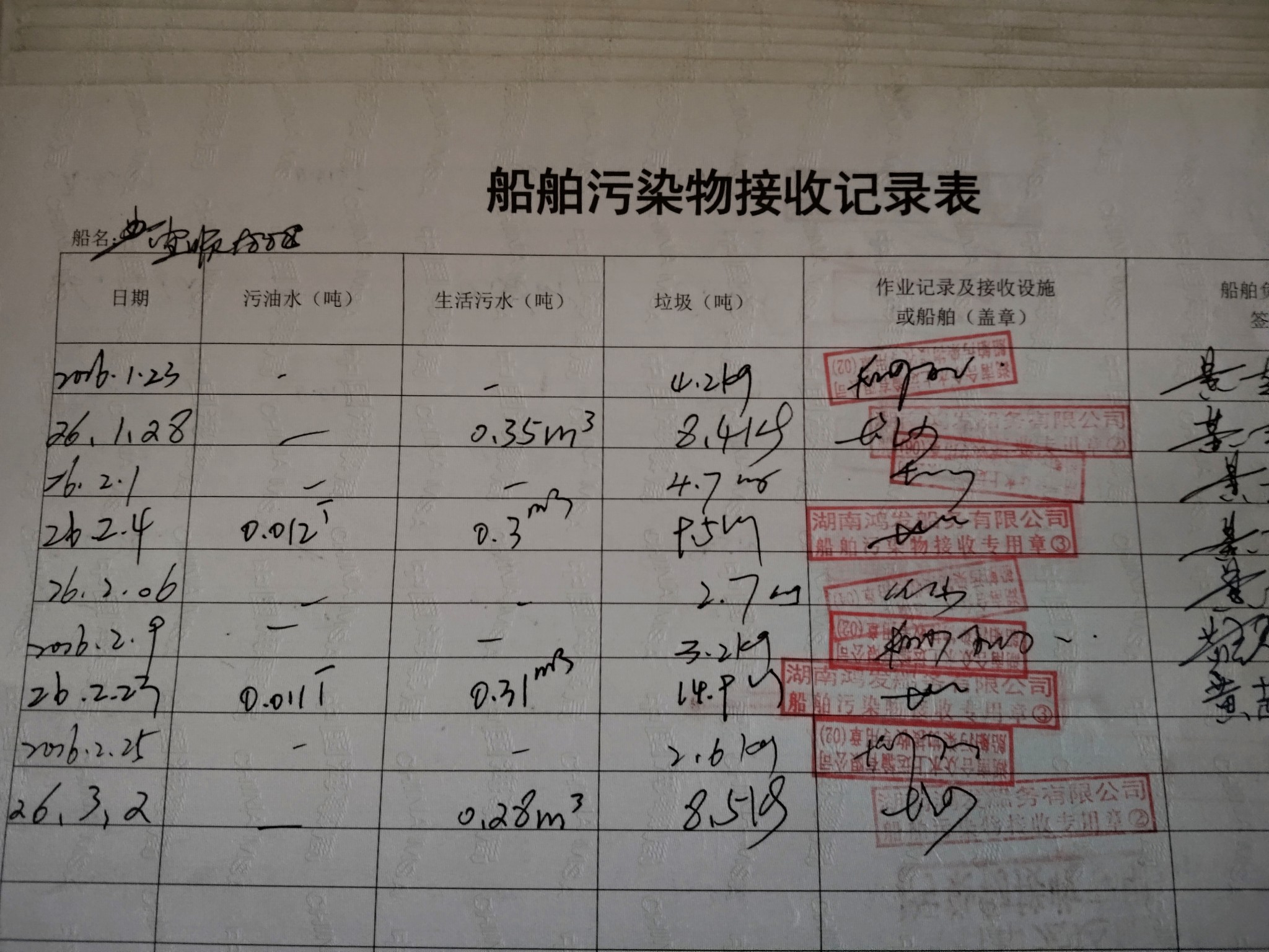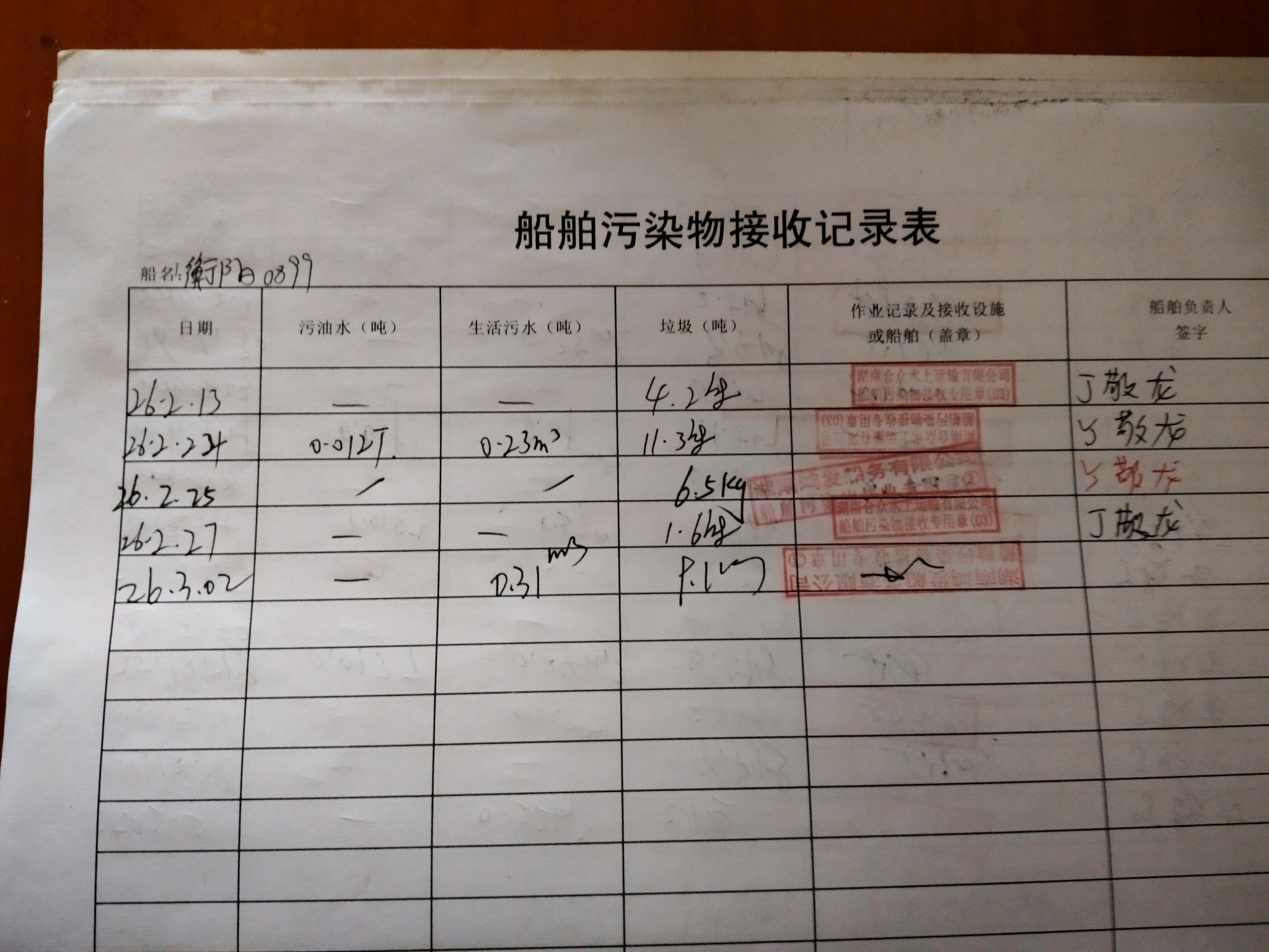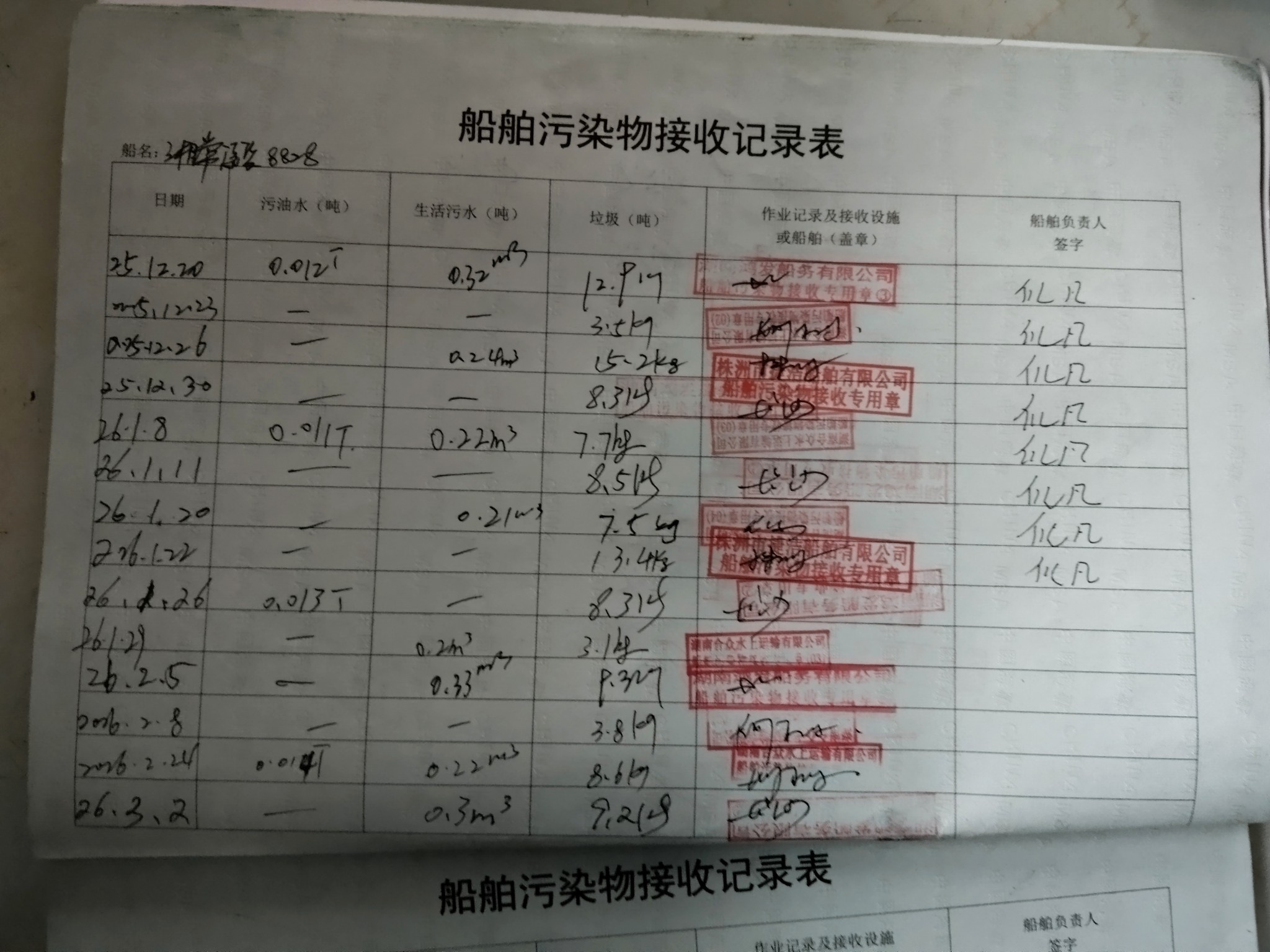 登船台账