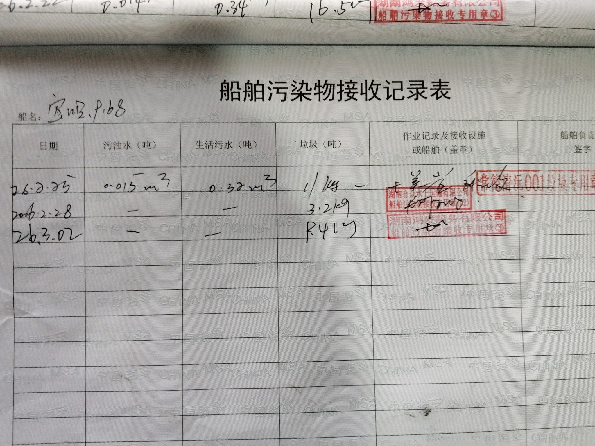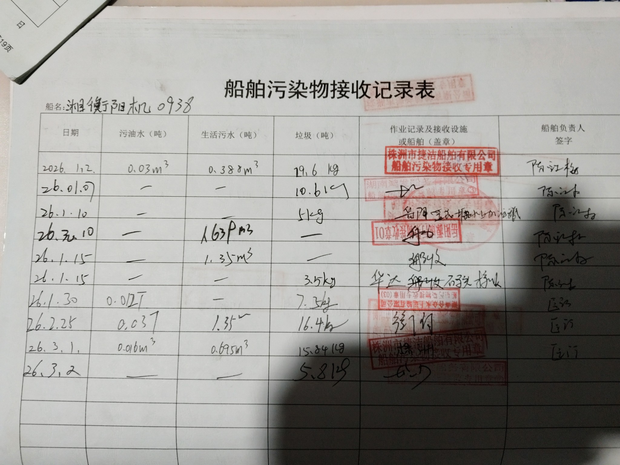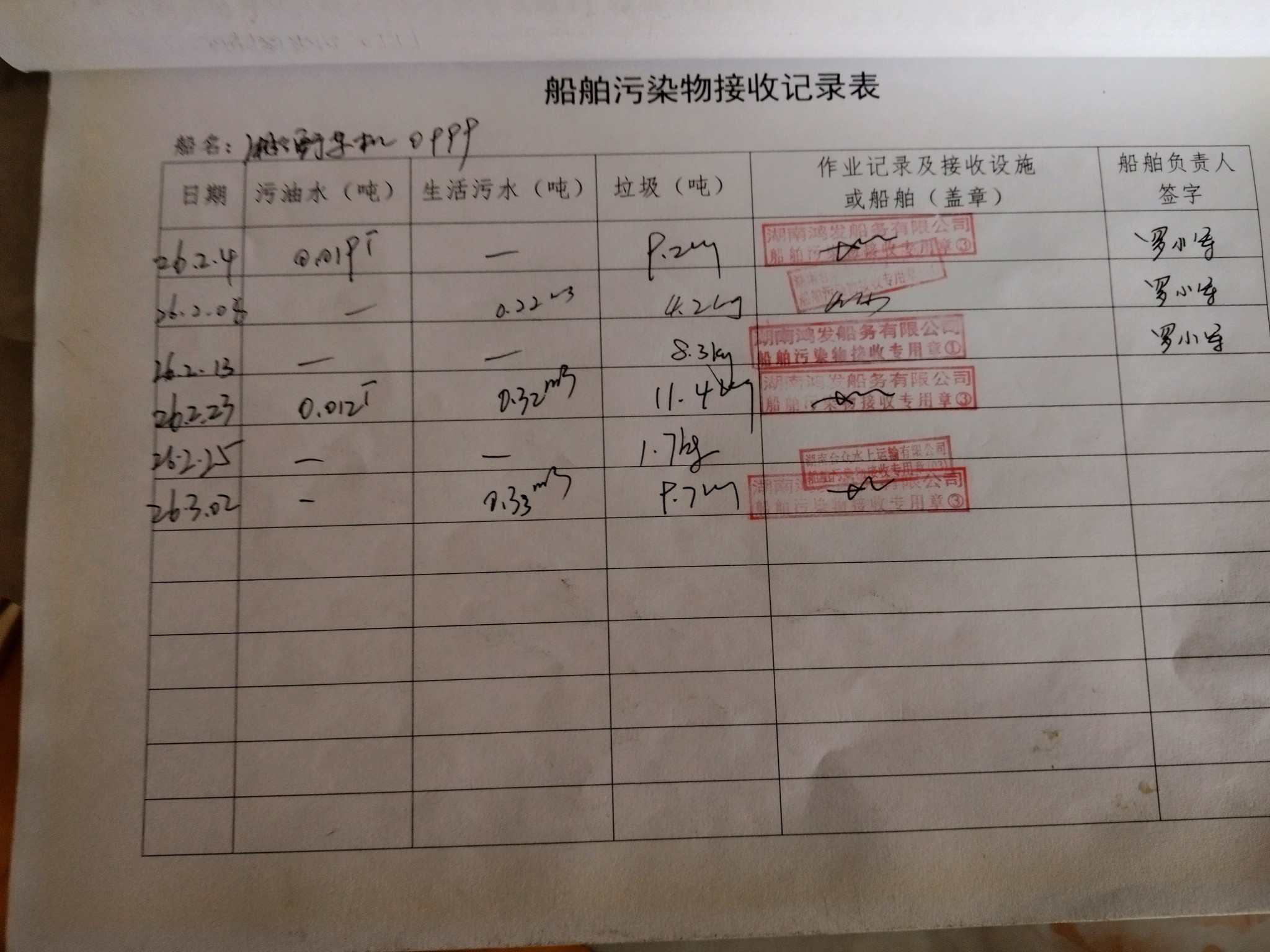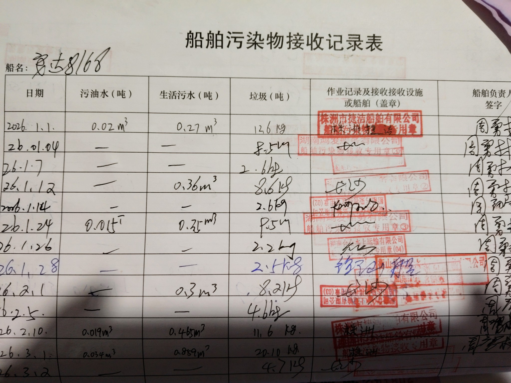 登船台账