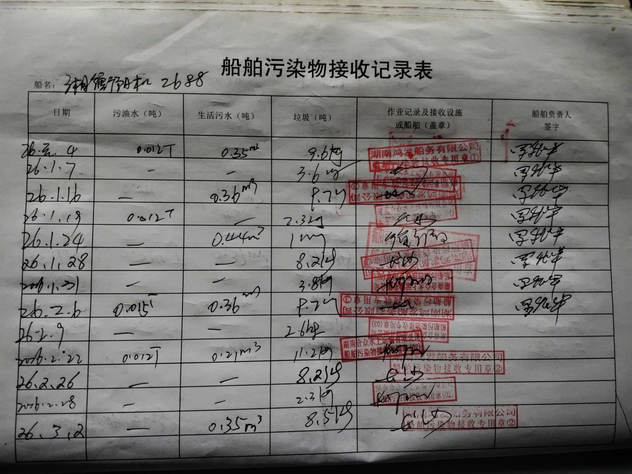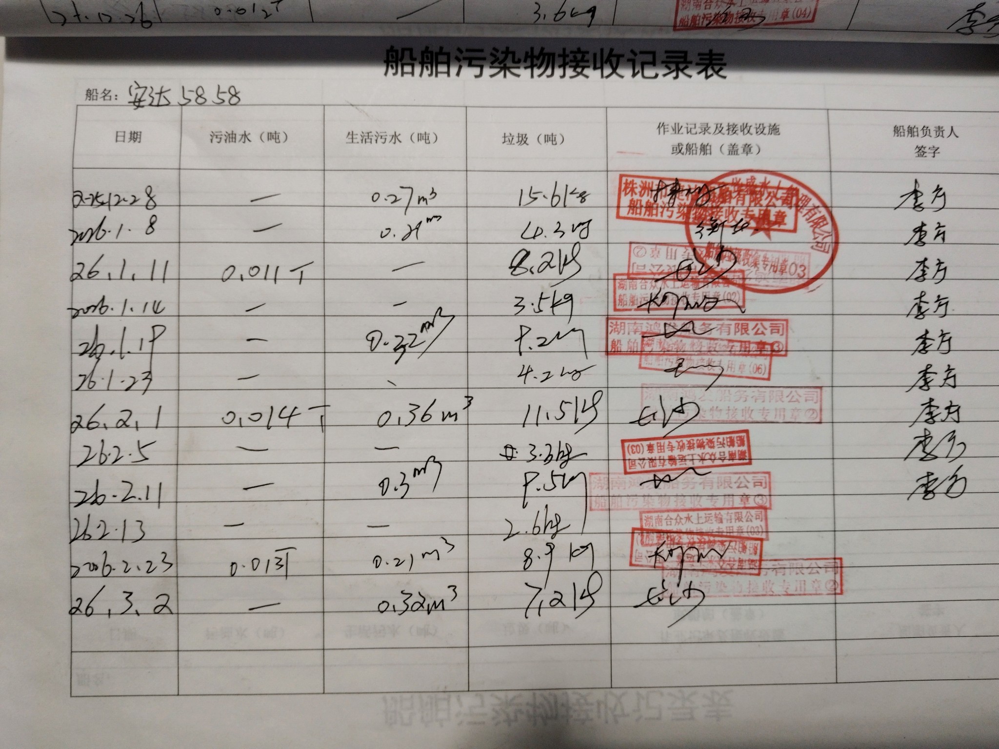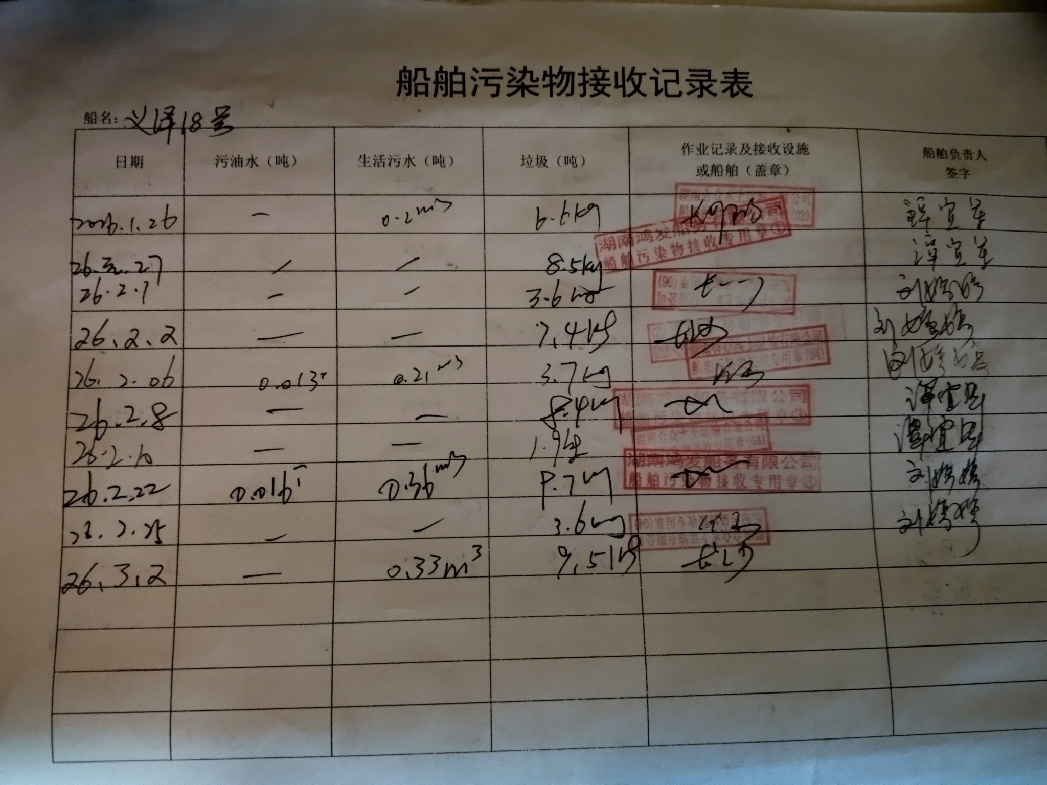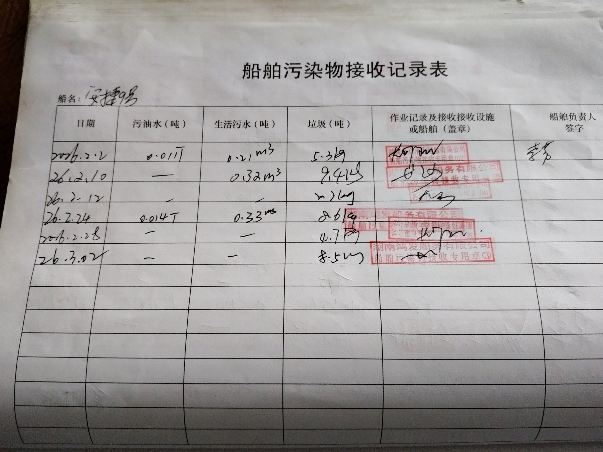 登船台账