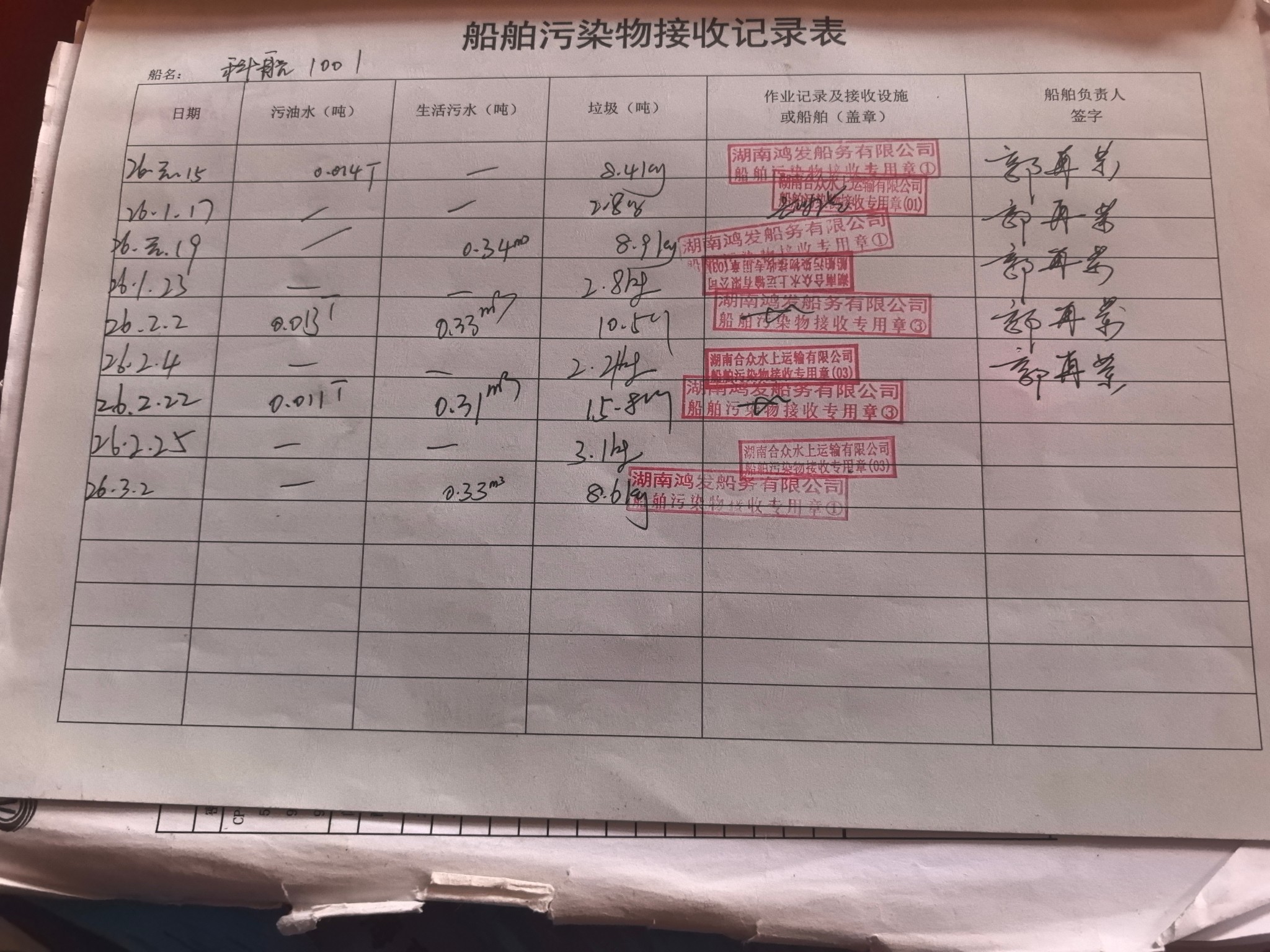 登船台账